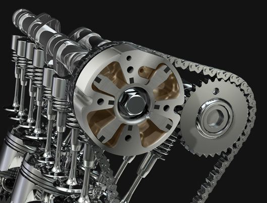 バリアブルバルブタイミング機構を備えたので高回転域でも伸びるし
