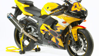 YAMAHA401-600 YZF-R46 大人気motoGPライダーのバレンティーノ・ロッシ選手がデザインしたカウルを身にまとうYZF-R6がYZF-R46である。46はロッシ選手のゼッケンから。世界限定300台で日本でも30台販売された。左右のカウルでデザインが違うのが特徴でロッシ選手のサインがタンクに書かれている。 2023.11.11 YAMAHA401-600