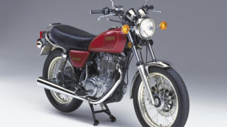 YAMAHA401-600 SR500 日本ではヤマハのSRといえば400だが、もとはXT500のエンジンなのでSR500が本来の姿。海外でもSR500が当たり前。カウボーイスタイルのバイクがコンセプトでSR400よりアップハンドルになっている。 2023.11.17 YAMAHA401-600