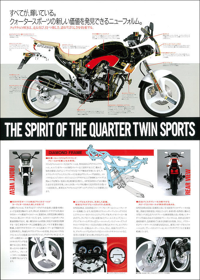 しかしこのGPZ250R、GPZを名乗るだけあって中身はしっかりスポーツモデル
